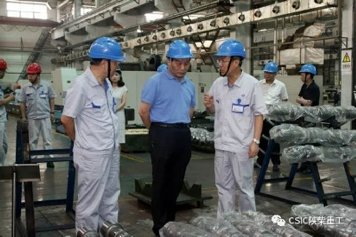 楊志鋼一行在陜柴重工領導陪同下,參觀了陜柴廠史館和機加一分廠、裝配試驗廠,實地了解了陜柴發展歷程和生產能力。