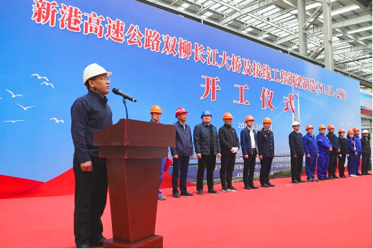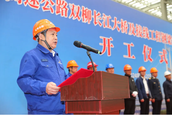 ▲湖北交投雙柳長江大橋有限公司黨委書記、總經理、總監理工程師汪西華宣布開工