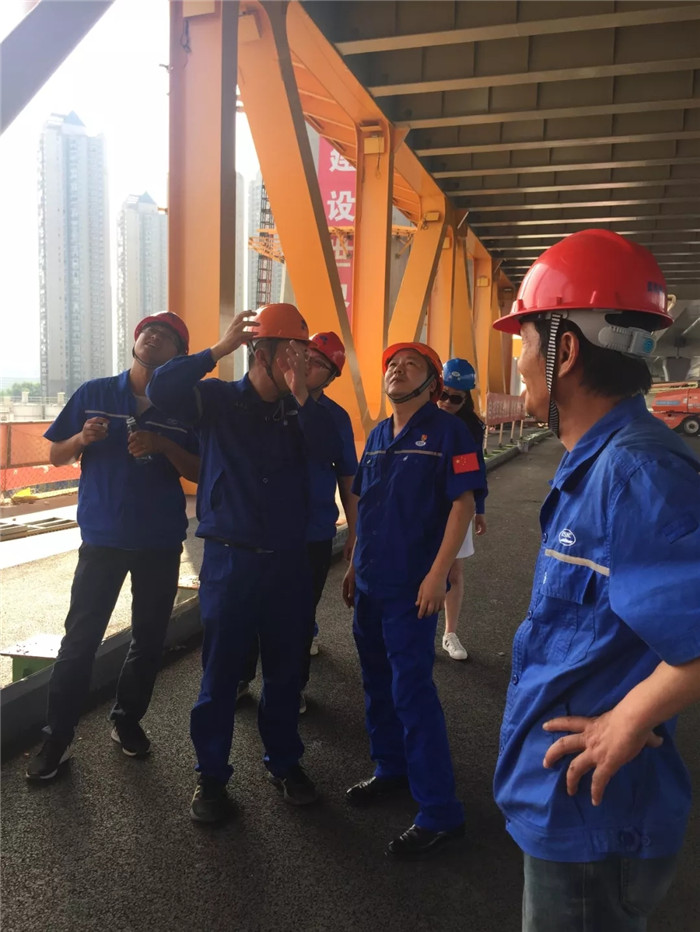 田軍首先親切慰問了項目部成員,詳細了解了楊泗港大橋目前的進展情況,察看了現場施工情況。田軍對楊泗港大橋現場安裝工作取得的成績表示祝賀,并對項目后期總體計劃的實施和部署提出了指導性意見。田軍要求,項目部要根據總包工期要求做好工程總體計劃安排和跟蹤,在施工過程中要嚴格遵守工藝要求、堅決執行質量紀律,同時做好高空、臨邊作業及防暑降溫等措施,確保項目保質保量、安全高效地推進。