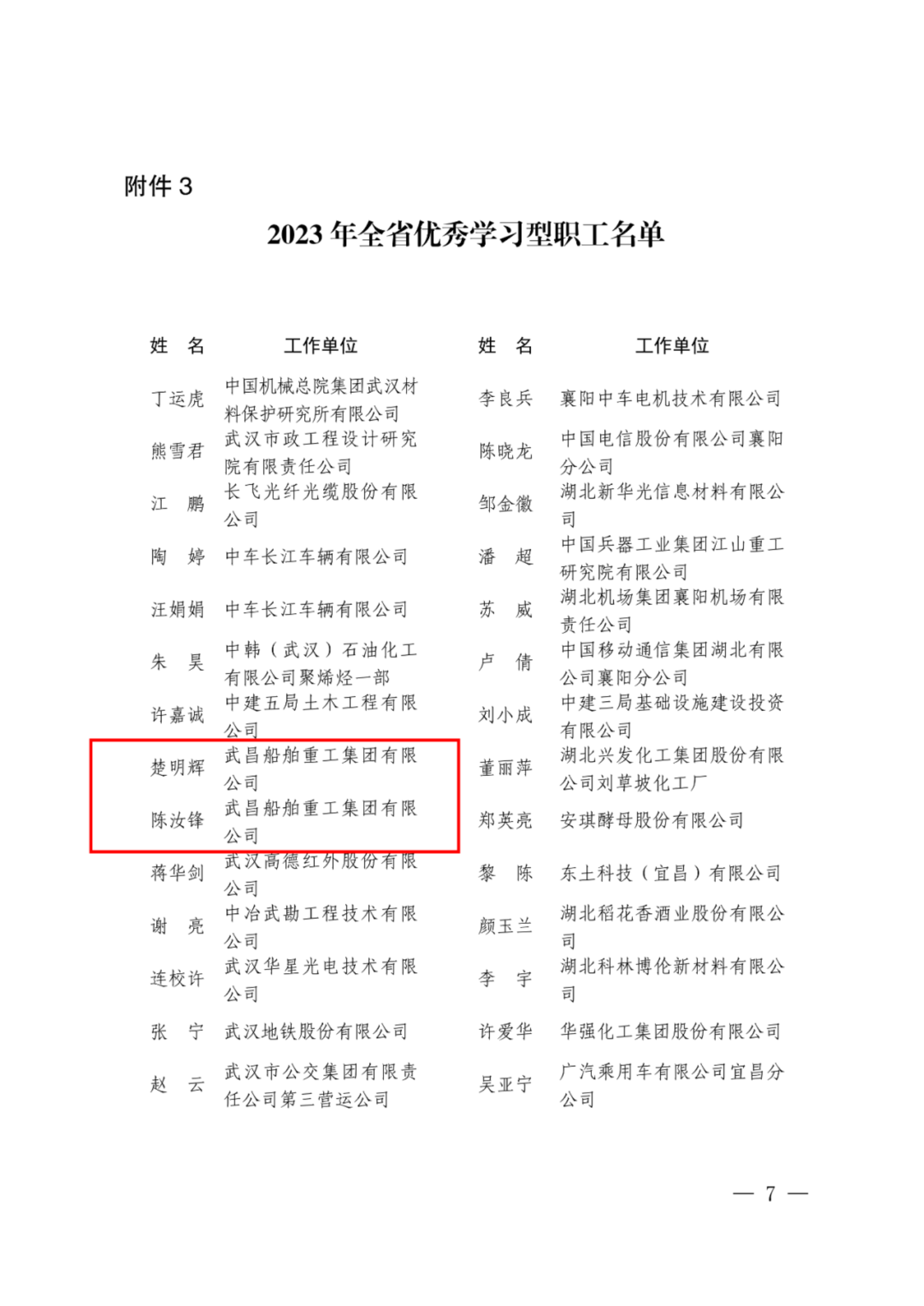 近日,湖北省總工會和武漢市總工會紛紛傳來喜訊,中國船舶集團武昌造船五名職工分別獲評省市級“優秀帶徒名師”“學習型職工”。
