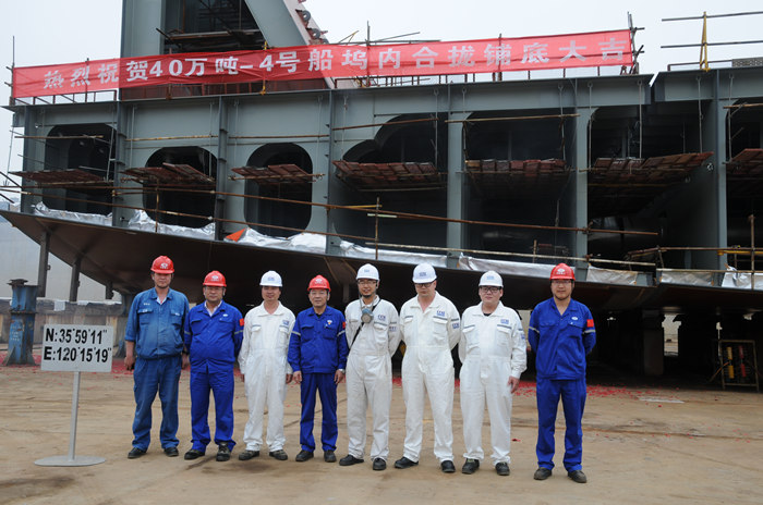 又訊 武船集團北船重工承建的40萬載重噸礦砂船4號船于6月5日上午在2號造船塢鋪底。這是第7艘40萬載重噸礦砂船鋪底。