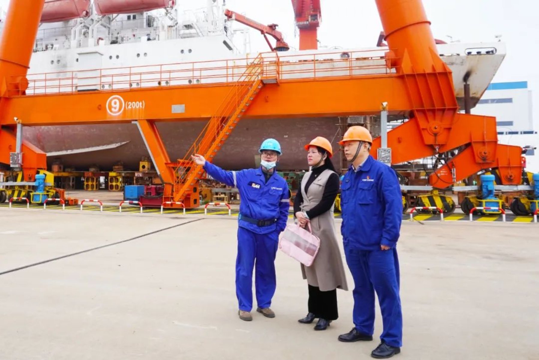徐艷一行參觀了偉人廣場、船臺碼頭等民船生產線、機電公司自動化生產線、代能武大師工作室、陶興泉創新工作室、重工橋梁自動化生產線、技術學校技能實訓基地等地。