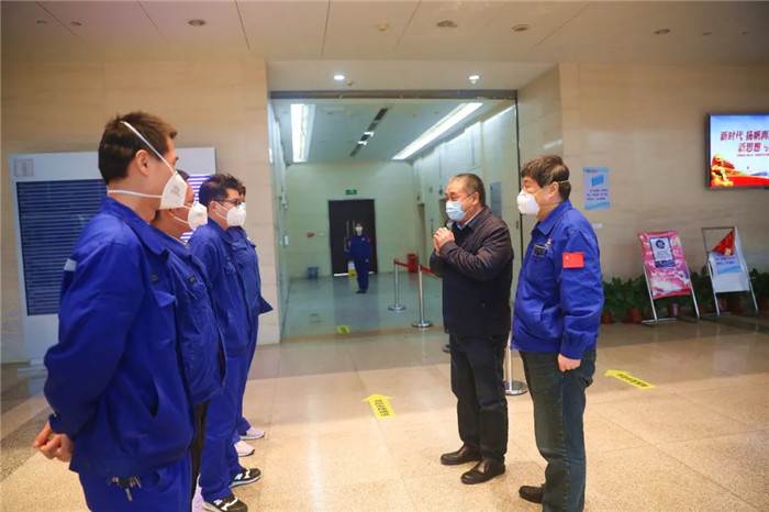 座談開始前,張文彤在陳?降吶閫?下看望慰問了公司援建火神山、雷神山醫院的職工代表。