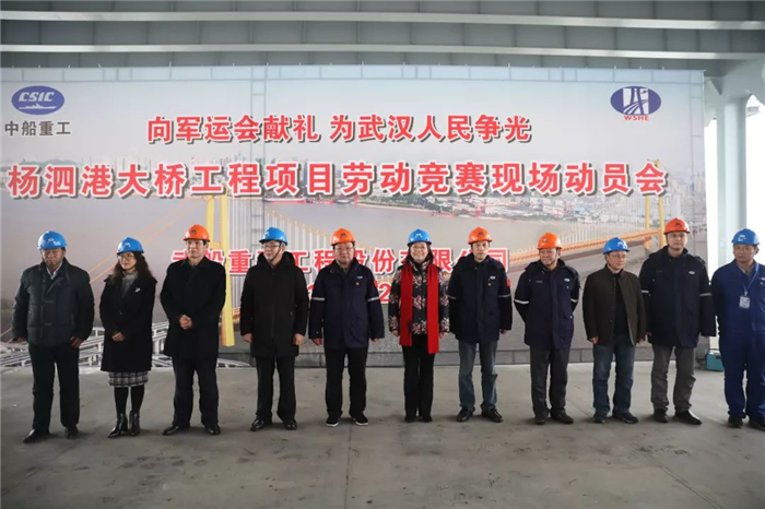 楊少稀在勞動競賽動員時指出,楊泗港大橋是軍運會重點工程,項目全體參建人員要以本次專項勞動競賽活動為契機,周密策劃,科學組織,全力沖刺,按照打造標準化、規范化、精細化的品質工程進行施工和管理,確保項目按競賽方案要求節點完成夯實工作基礎;要腳踏實地把關乎百年大計的工程做好,為武漢軍運會和城市建設貢獻武船力量,向武漢人民交一份滿意的答卷。