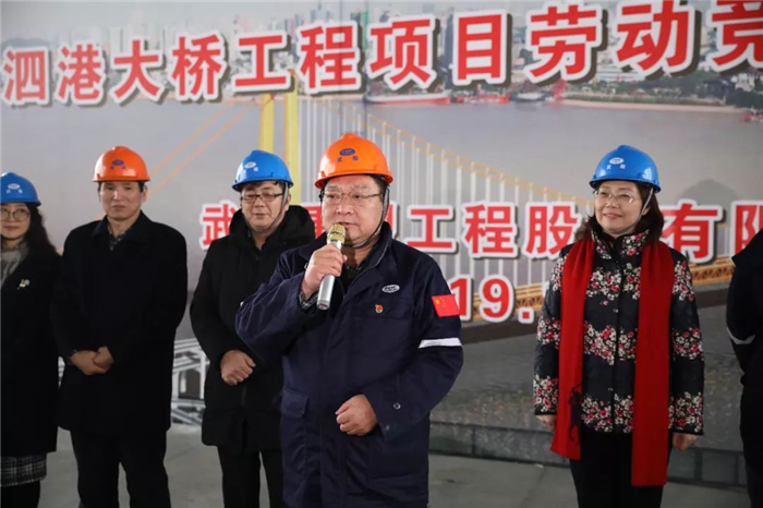 1月28日下午,寒風蕭蕭,細雨蒙蒙,在楊泗港大橋橋面建設工地,市工會聯合武船集團舉行“當好主人翁 建功新時代”2019年第一場勞動競賽活動啟動儀式。