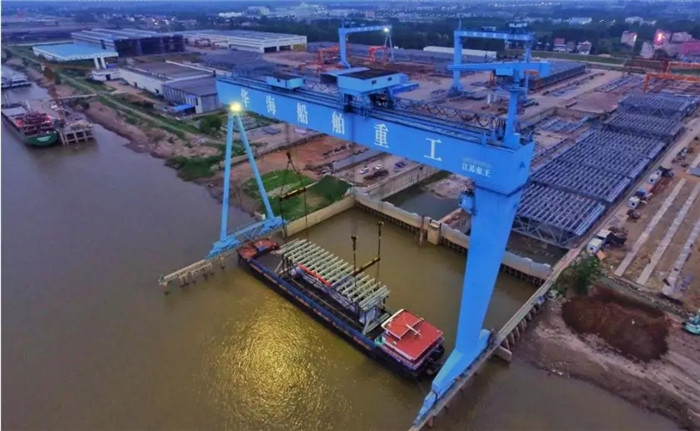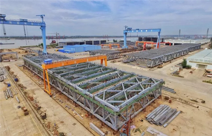白洋長江公路大橋作為武船重工股份承接的首座千米級跨徑全栓桁架橋,總重達14333.68噸,38節梁段分7輪進行制造和總成拼裝工作。