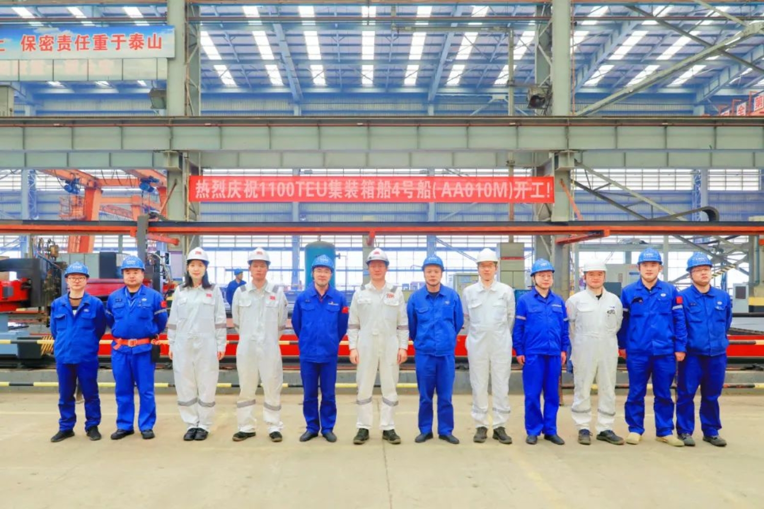 4月7日上午11時18分,武昌造船為CA Shipping建造的1100TEU集裝箱船4號船在雙柳廠區順利開工。該船順利開工標志該批一型四艘1100TEU集裝箱船系列船項目全部從前期策劃階段正式轉入船舶建造階段。船東代表、哥倫比亞船舶管理公司、NK船級社相關領導以及公司相關部門代表、產品三總師參加開工儀式。