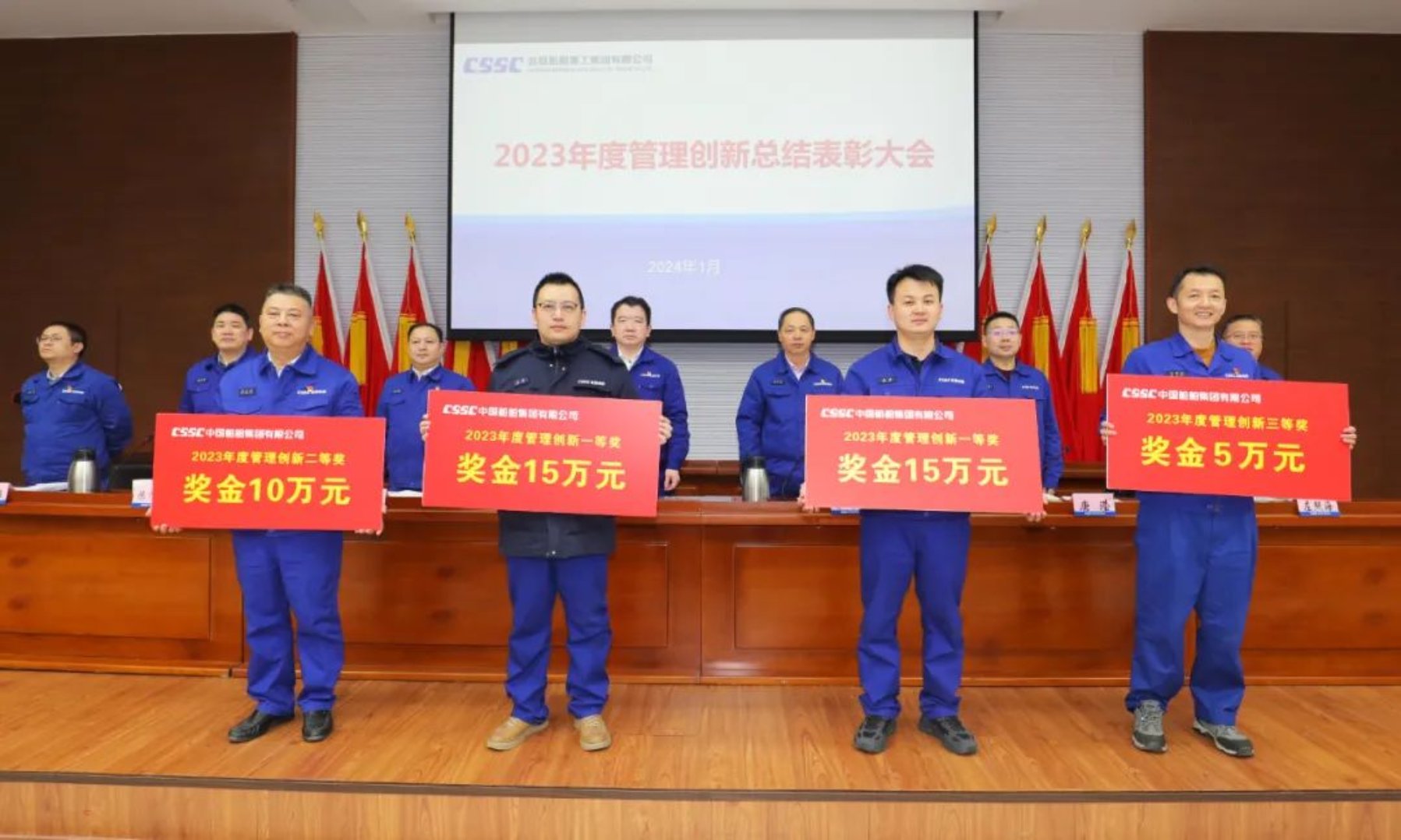 為推動公司管理創新工作,夯實管理基礎,營造蓬勃的創新氛圍,1月4日,中國船舶集團武昌造船召開2023年度管理創新總結表彰大會。公司黨委書記、董事長姜濤出席會議并講話,黨委副書記、總經理梁師清主持會議,公司領導田軍、唐瀅、陳仲明、左照海、劉祎出席會議。公司各單位主要負責人、分管管理創新工作負責人、管理創新先進代表等近百人參加會議。