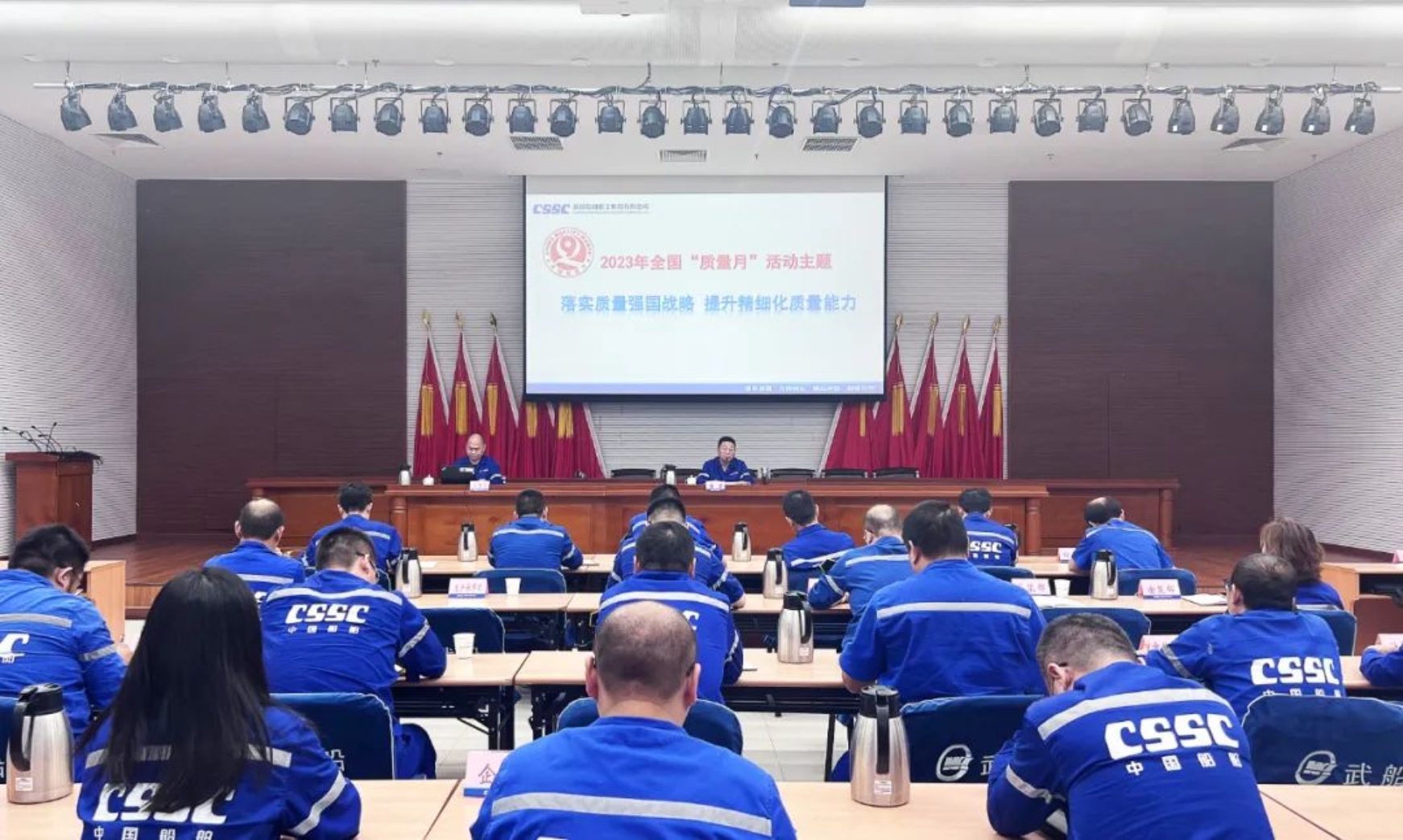 9月1日上午,中國船舶集團武昌造船組織召開2023年全國“質量月”活動動員大會。公司黨委委員、副總經理、總工程師唐瀅,各單位質量分管領導,質量管理員近50余人參加會議,正式拉開了武昌造船“質量月”活動序幕。
