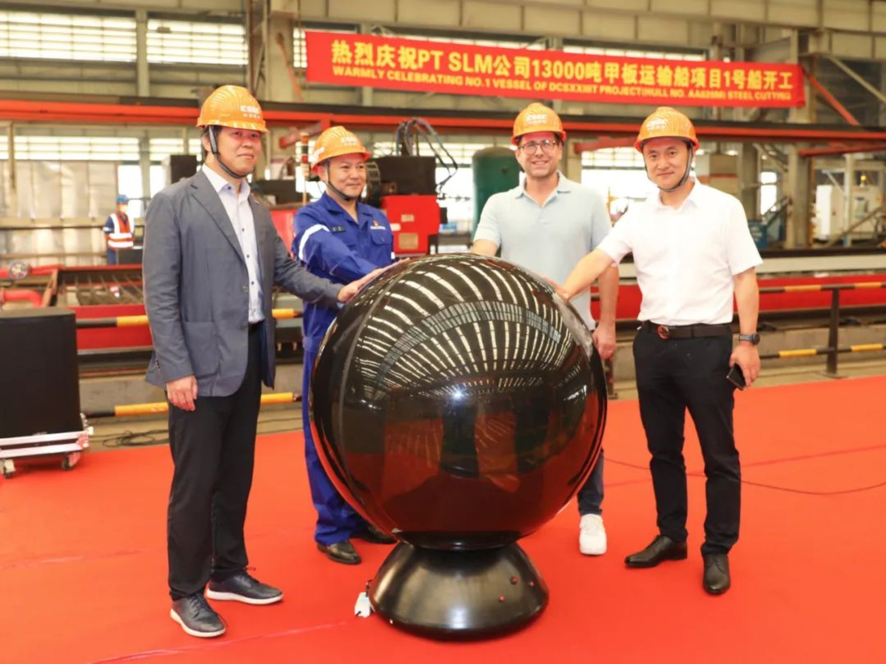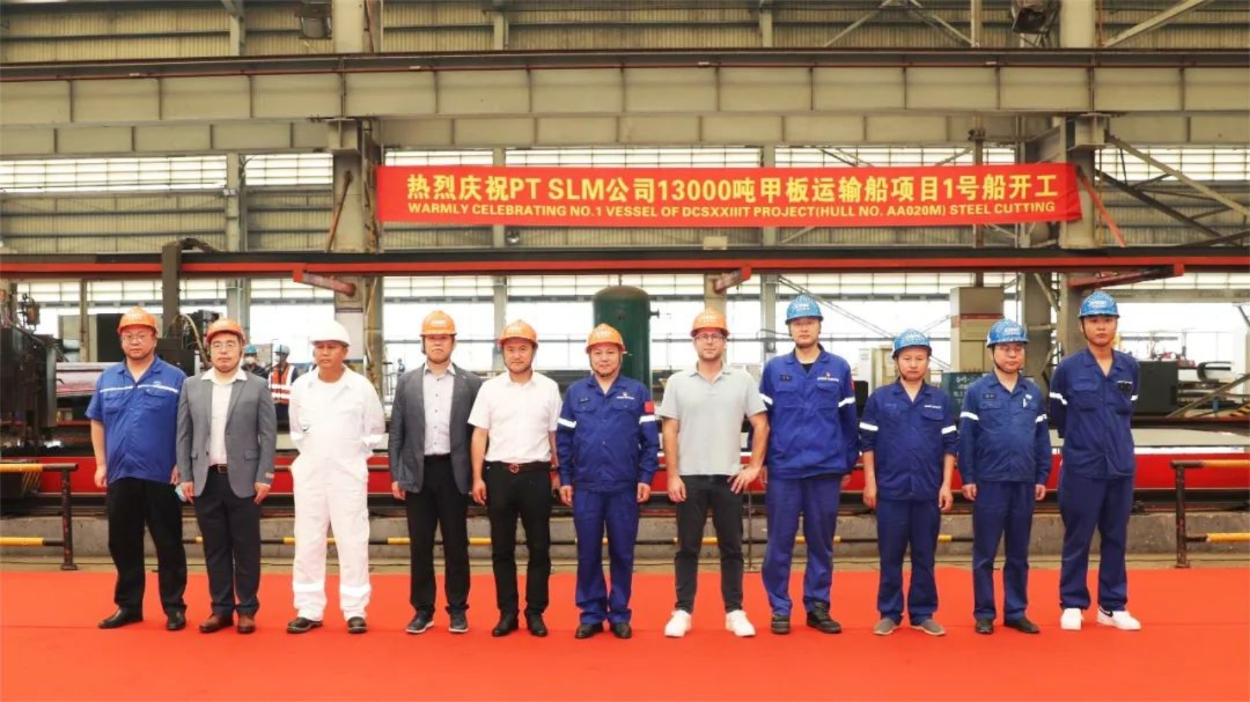5月19日上午,武昌造船承接的印尼PT SLM公司新13000DWT甲板運輸船首制船在雙柳總部順利舉行開工儀式。PT SLM公司首席執行官Matthieu Lavoine先生,金海洋船舶管理有限公司總經理紀偉先生,韓國船級社(KR)上海公司總經理Kim Jeekun先生,武昌造船黨委委員、副總經理田軍先生及武昌造船設計研究院、質量部、分段制造部、海工院和經營部部門領導參加了開工儀式。