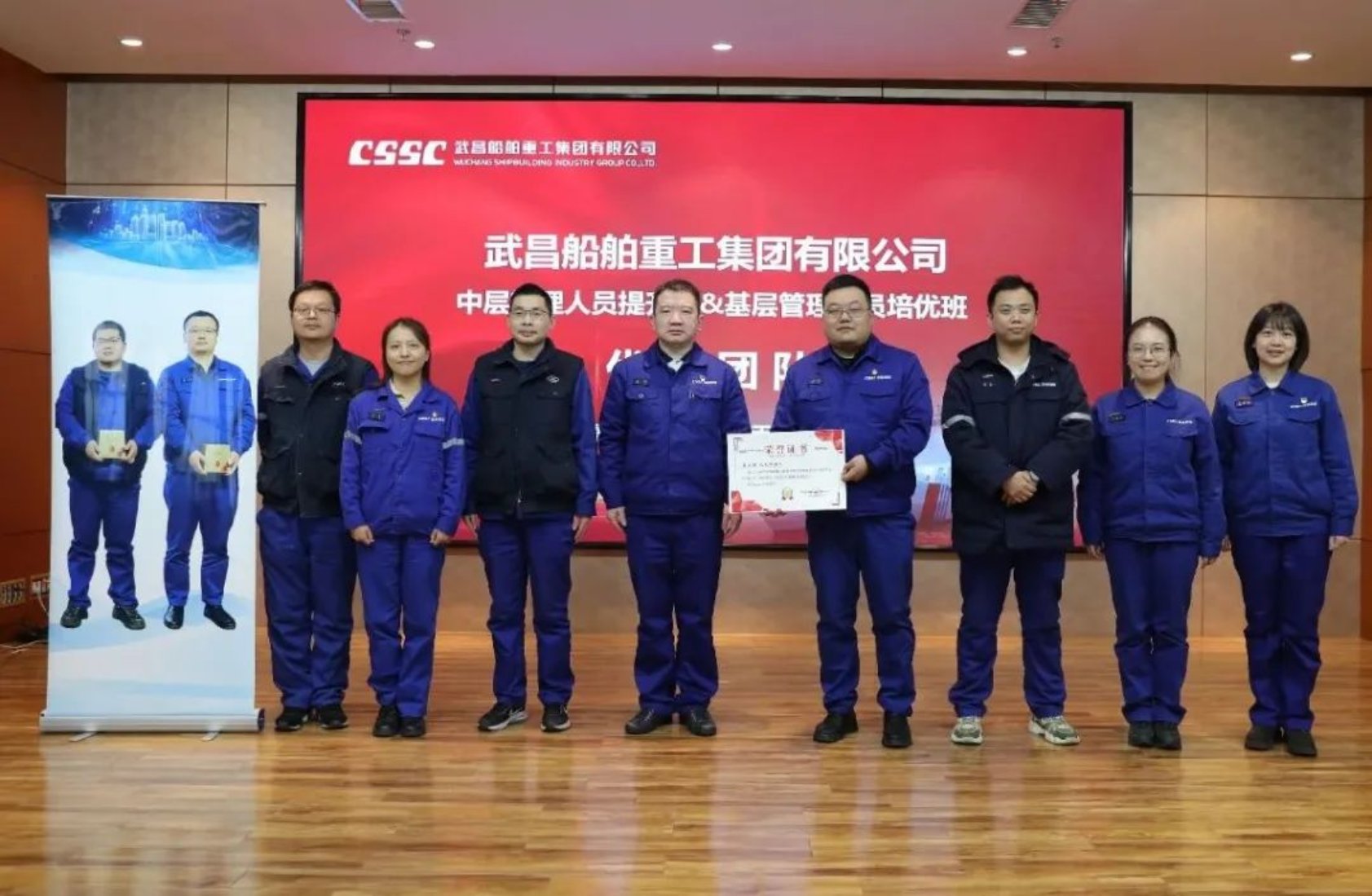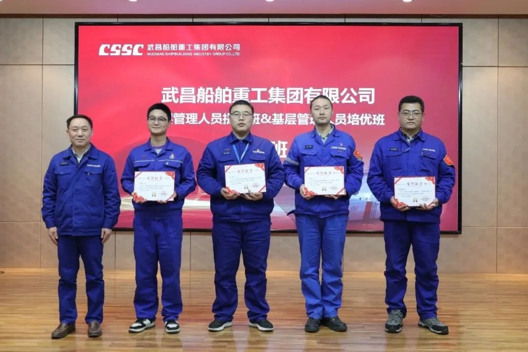 12月14日,中國船舶集團武昌造船首屆中層管理人員提升班、基層管理人員培優班結業典禮在創新樓12樓武船講堂順利舉行。公司黨委書記、董事長姜濤,黨委委員、副總經理田軍,黨委委員、副總經理、總工程師唐瀅出席結業儀式,培訓班全體學員參加結業典禮。