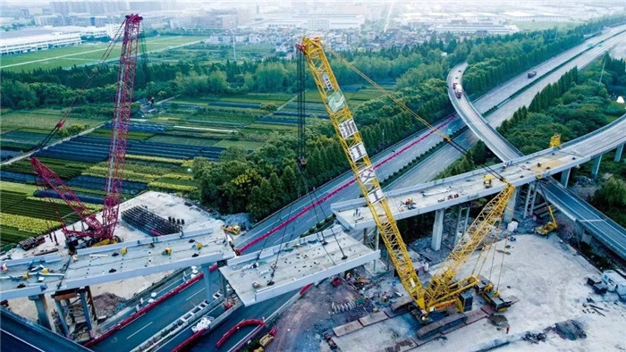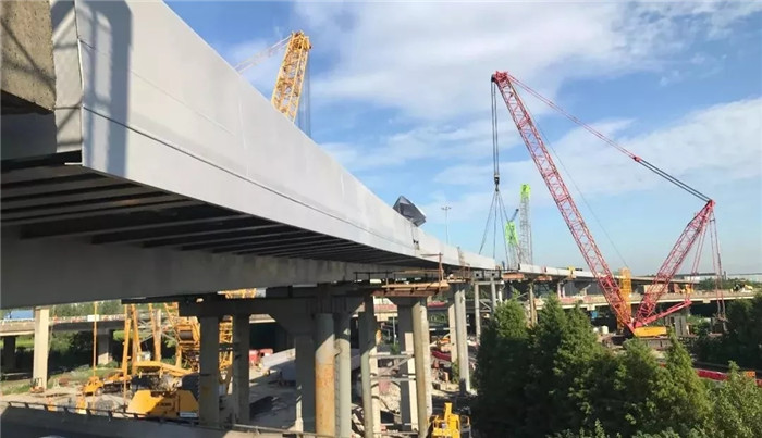 紅墾橋位于蕭山機場附近的一處交通樞紐點,周邊有G92(杭甬)、G2504杭州繞城高速公路東線和G60(杭金衢)三條高速縱橫交錯。項目拼裝場地狹小,施工周期緊迫,施工技術難度大,工藝可循先例少、工期緊張、全程涉高速施工安全風險高、多地聯動交通組織難度高等諸多困難。