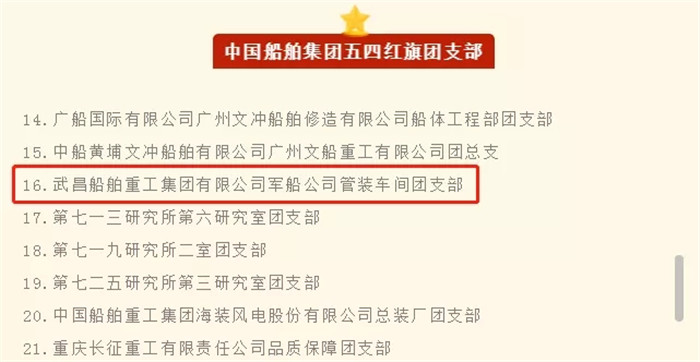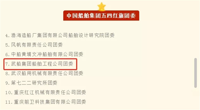 “中國船舶集團五四紅旗團支部”榮譽稱號