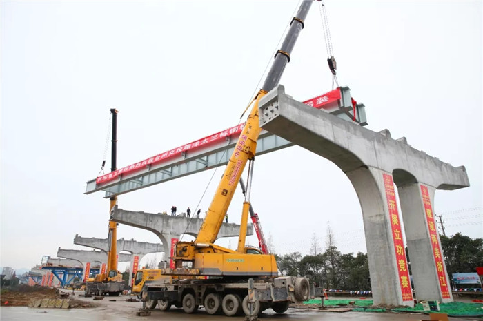 12月31日10點28分,由武船重工股份承建的路澤太高架TJ03標鋼板梁首片梁架設成功,這標志著路澤太高架鋼板梁安裝已進入實質性施工階段。