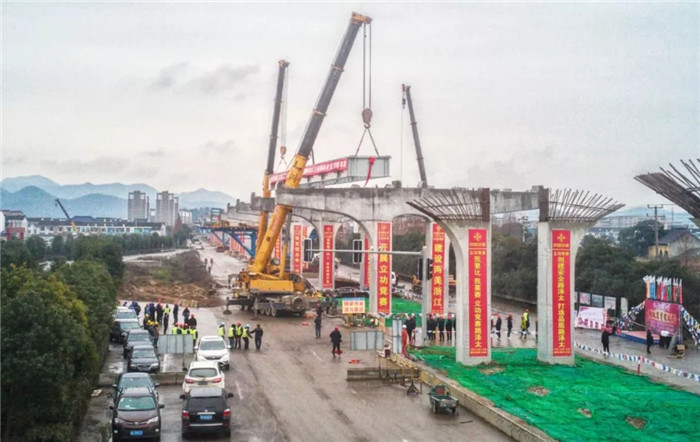 臺州路澤太高架TJ03標鋼板梁首片梁架設成功
