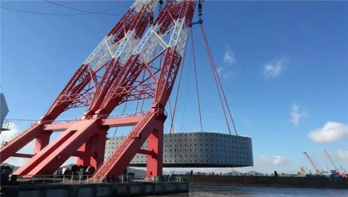 寧波舟山港主通道內層防撞鋼套箱吊箱完成