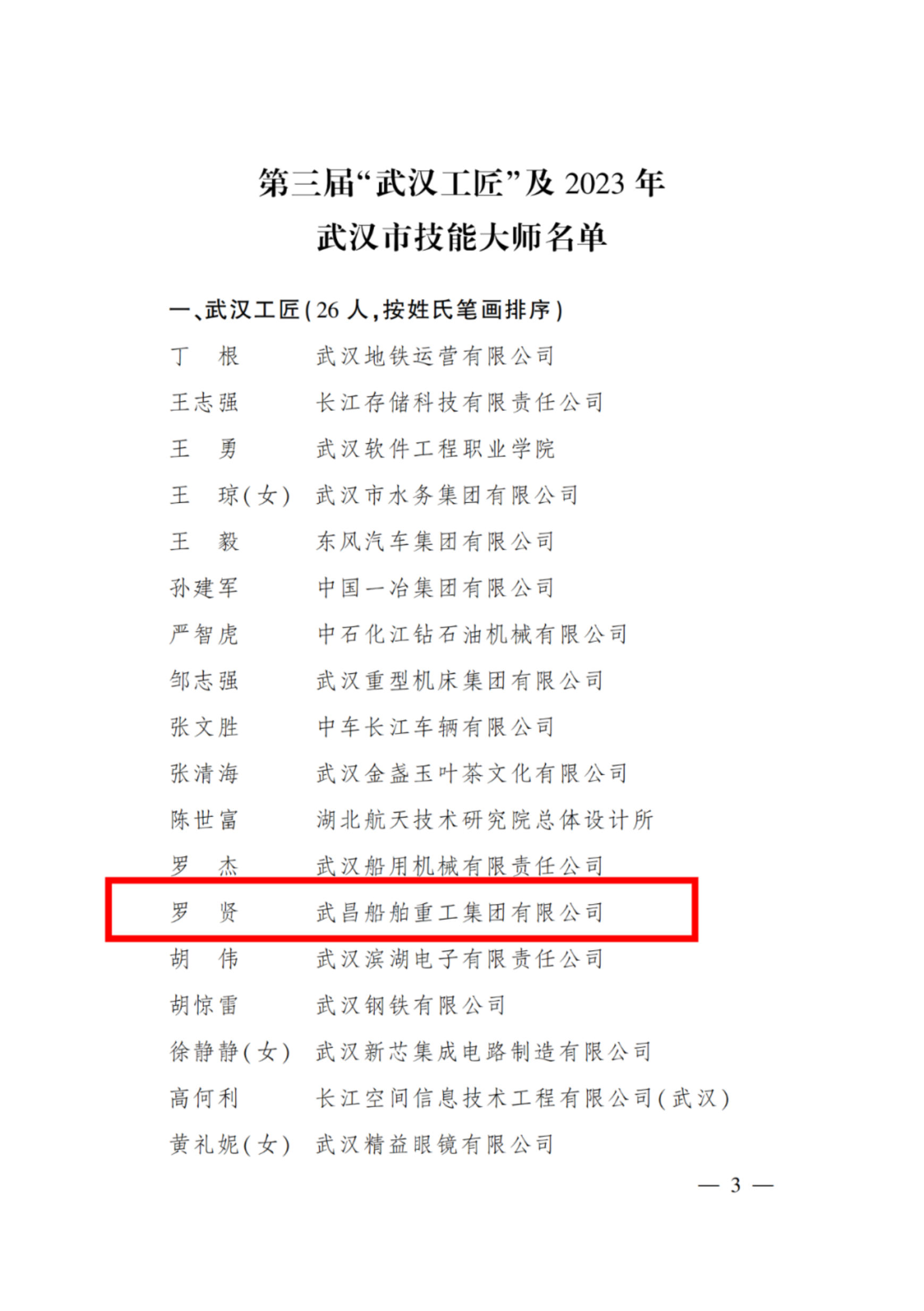 匠心筑夢,技能報國。近日武漢市人民政府公布第三屆武漢工匠及2023年武漢市技能大師名單中國船舶集團武昌造船特船事業部羅賢入選“武漢工匠”,機電事業部陶興泉入選“武漢市技能大師”。