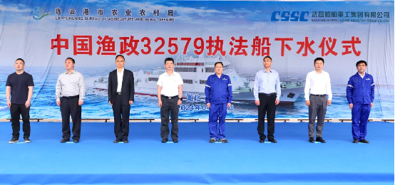 4月16日9點58分,由中國船舶集團武昌造船建造的 新建300噸級漁政執法船“中國漁政32579” 順利下水!連云港市委副書記、統戰部部長盧剛,連云港市農業農村局副局長李寶波,連云港市海洋與漁業綜合行政執法支隊支隊長張長春,武漢市交通運輸局港航事業發展中心檢驗組涂航,武漢船舶設計研究有限公司執行董事黃俊,中國船級社實業有限公司武漢分公司副總經理吳章,武昌造船黨委委員、副總經理田軍等相關單位領導及嘉賓出席下水儀式。