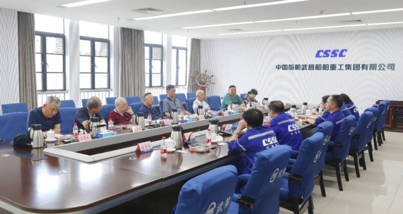 在武昌造船建廠89周年廠慶來臨之際,6月2日,中國船舶武昌造船舉辦離退休老干部參觀座談活動。離退休老干部們懷著對公司的深厚感情和誠摯關心來到武昌造船雙柳總部參觀、座談。公司黨委副書記、總經理梁師清,公司黨委委員、副總經理田軍,公司黨委委員、黨委工作部部長李建操,各相關單位領導參加座談。