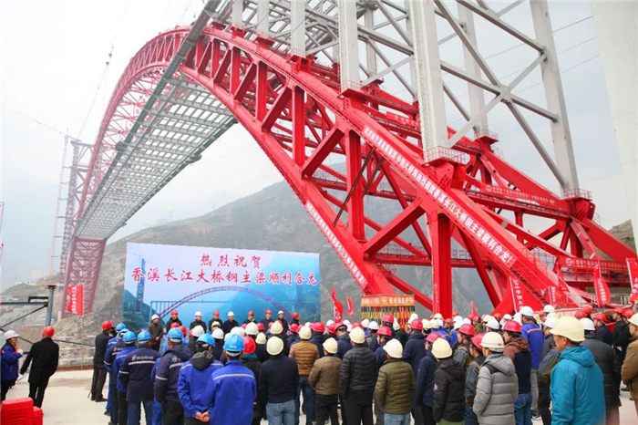 12月27日上午,隨著最后一節鋼主梁成功吊裝就位,由武船重工股份承建的世界最大跨度鋼箱桁架推力拱橋鋼主梁順利實現合龍,合龍儀式在橋址南岸舉行,大橋業主、設計、總包、監理單位,武船重工股份副總經理、工會主席姜海松及公司項目部成員參加合龍儀式。