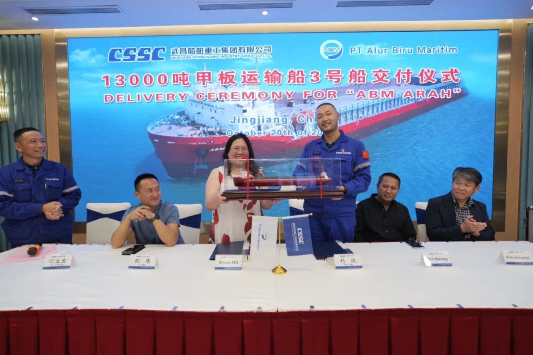 2022年10月20日由中國船舶武船為印尼PT ABM公司建造的13300噸甲板運輸船3號船在中船澄西(泰州)出口碼頭順利交付。13300噸甲板運輸船3號船作為武船為該船東設計、建造的第11條船,也是第三代系列船的收官之作。