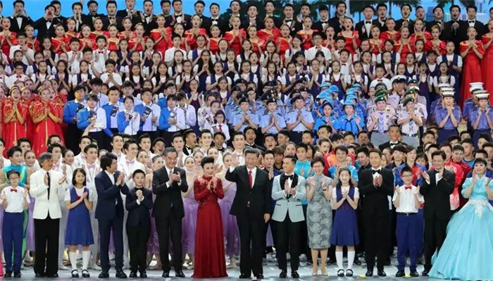 ▲2017年6月30日晚,習近平主席在香港會展中心同全場一起高唱《歌唱祖國》新華社記者馬占成攝