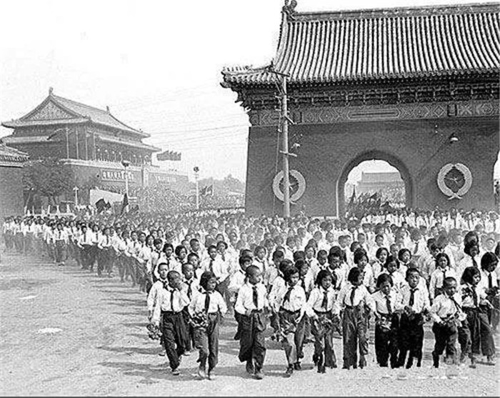 ▲1950年,天安門廣場上的少先隊員