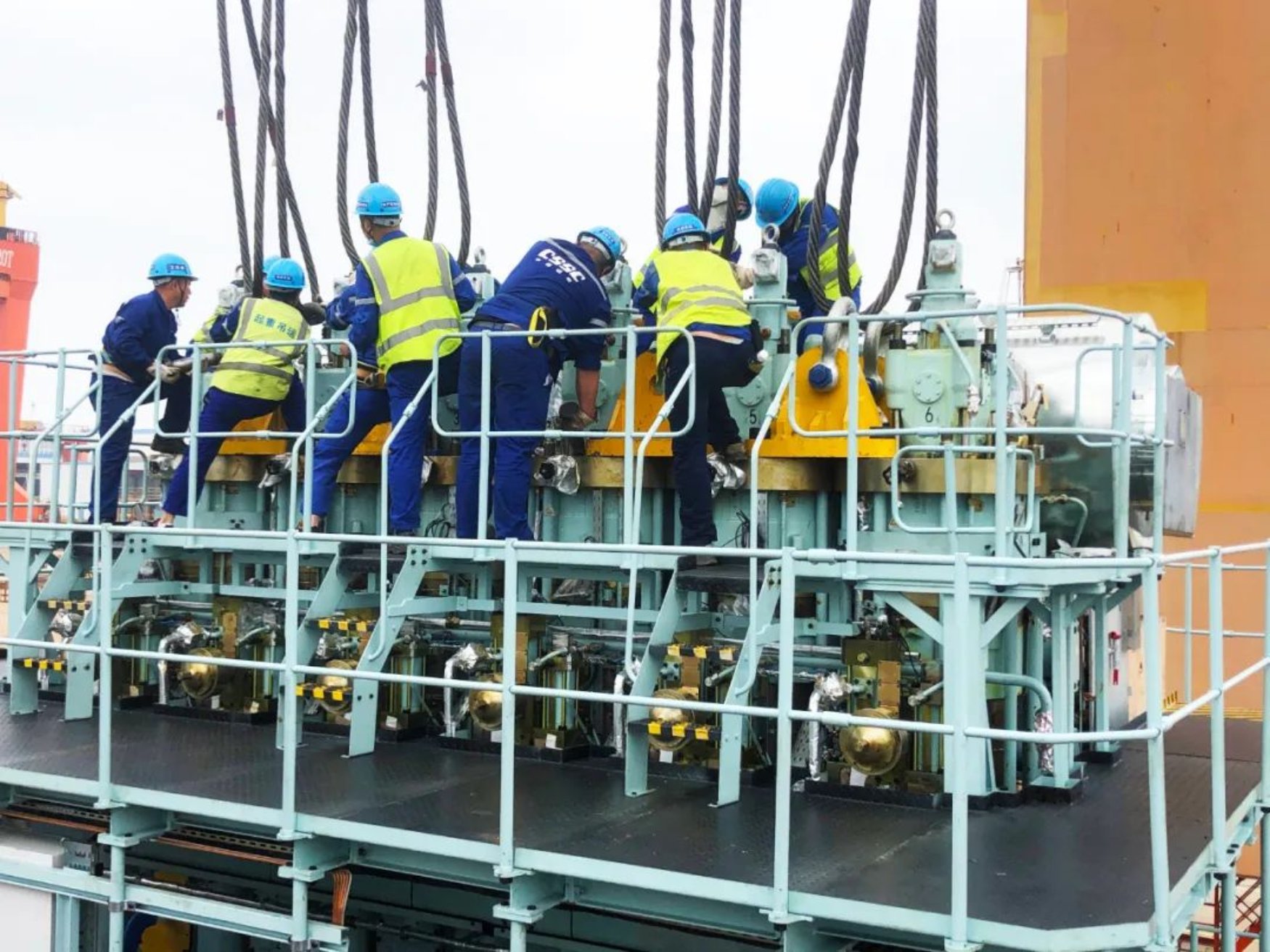 5月23日,由中國船舶集團武昌造船承建的1100TEU集裝箱船1號船主機(整機發運235噸),在雙柳廠區二號碼頭順利拖船至斜船架,起坡、轉運至300噸吊車覆蓋區域,經過各部門領導和員工的戮力同心,1100TEU集裝箱船1號船主機于當天下午17:38分安全轉運至48米跨主機放置區域。1100TEU集裝箱船1號船主機船運至武昌造船碼頭,是武昌造船民船歷史上首次實現主機整船起坡、轉運、吊裝。此次順利完成起坡、轉運和吊裝工作,為后續主機進艙安裝工作奠定堅實基礎。