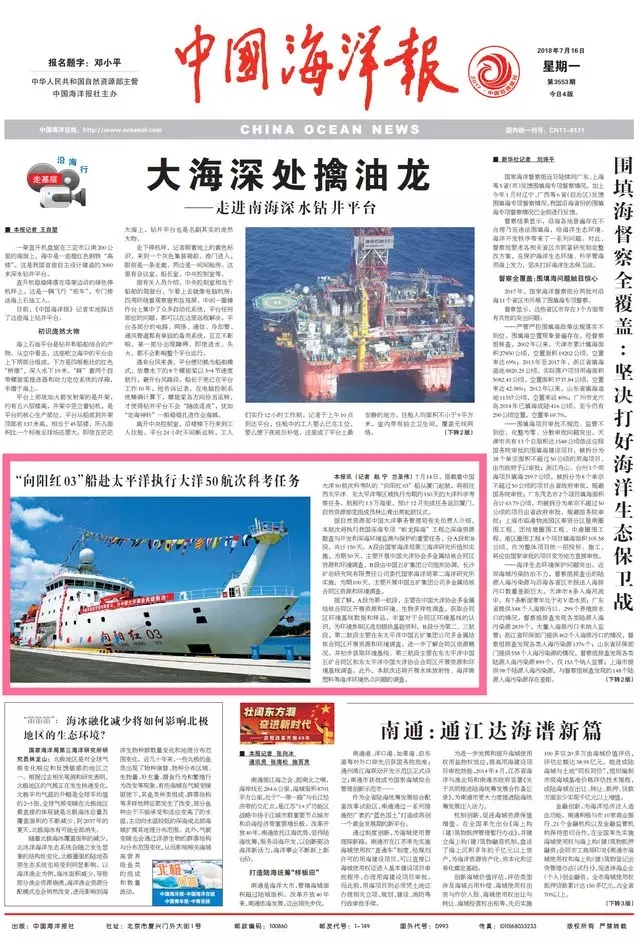 人民日報頭版、央視新聞聯播、新華網首頁……“向陽紅03”船這兩天頻繁“登陸”各大媒體“C位”,到底所謂何事?C?C