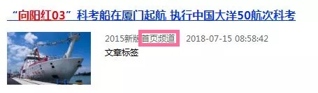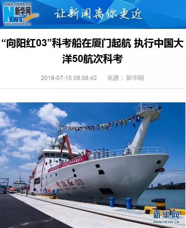 各大媒體紛紛報道的正是“向陽紅03”船出發的消息?C?C7月14日,搭載著中國大洋50航次科考隊的“向陽紅03”船從廈門起航。