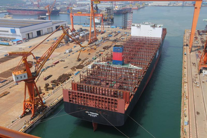 “達飛”系列集裝箱改裝項目首制船“美總淡馬錫”輪是武船集團北船重工修船分廠承接的全球首個大型集裝箱船切斷加長項目。該輪自5月22日進廠以來,在武船集團北船重工及分廠各級領導的支持及項目組策劃組織下,各項工作如期進行,于近日按計劃順利完成進塢。
